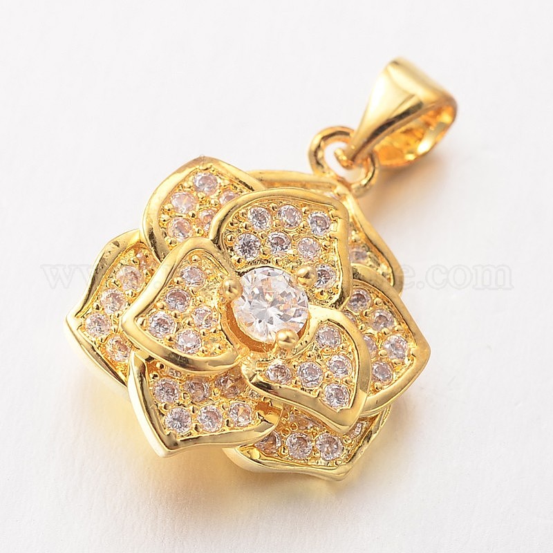 Цветок латунные микро проложить кубического циркония прелести, без свинца и без никеля , 18x15x7 мм, отверстие : 3x4 мм