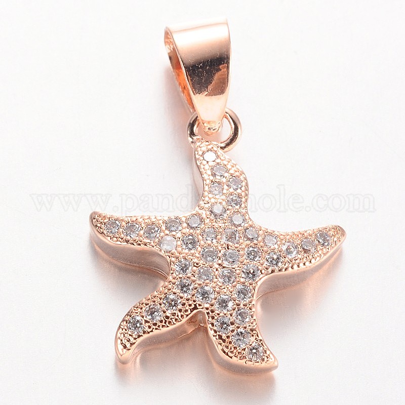 Морские звезды / морские звезды медные циркониевые подвески, 18x16x3.5 мм, отверстие : 4x5.5 мм