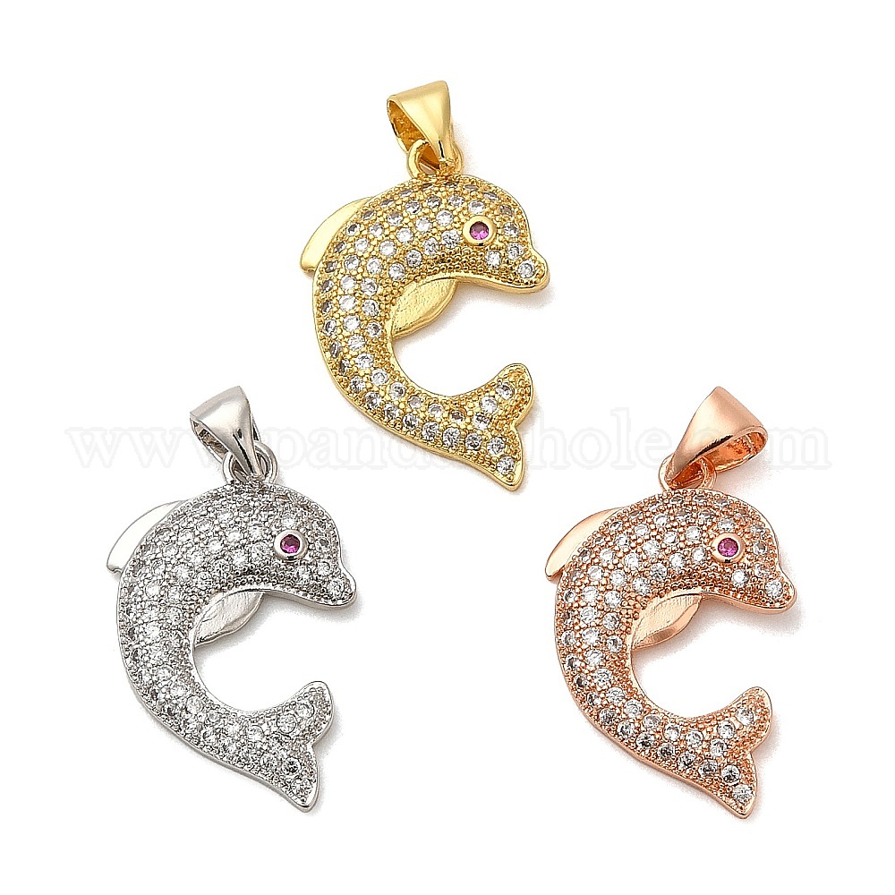 Дельфин латуни микро проложить Цирконом подвески, без свинца и без никеля , 21x15x3 мм, отверстие : 3x4 мм