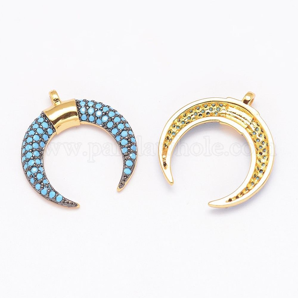 Латунные микро проложить класса AAA кубического циркония подвески, двойной рог / полумесяц, без кадмия, без никеля и без свинца