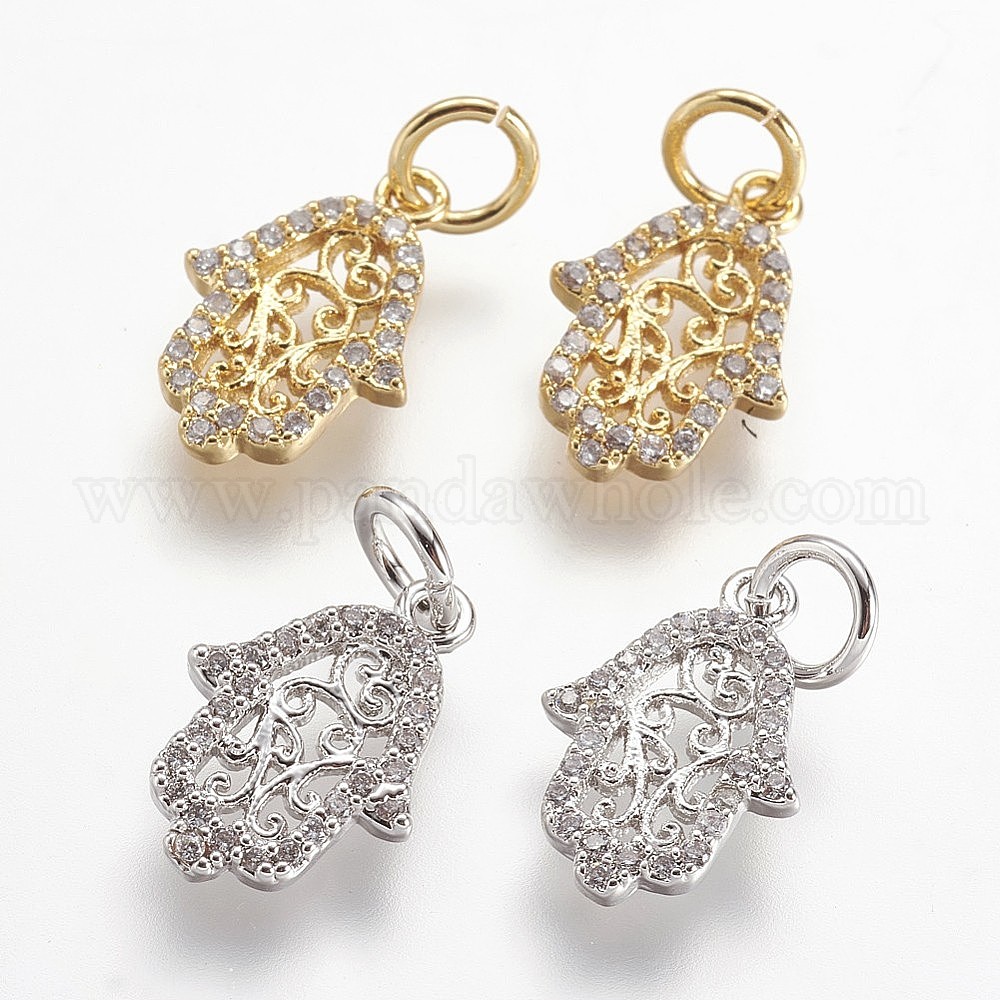 Латунные микро проложить кубического циркония прелести, hamsa рука / рука fatima / рука miriam, без кадмия, без никеля и без свинца