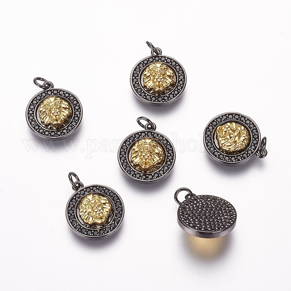 Латунные микро проложить кубического циркония подвески, без кадмия, без никеля и без свинца, плоские круглые с головой льва