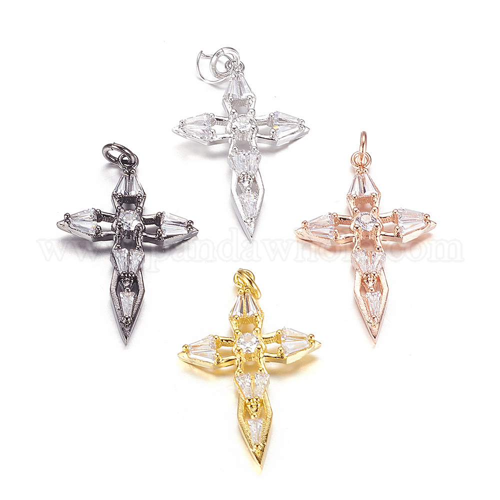 Латунные микро проложить кубического циркония подвески, крестик (00N9MY)