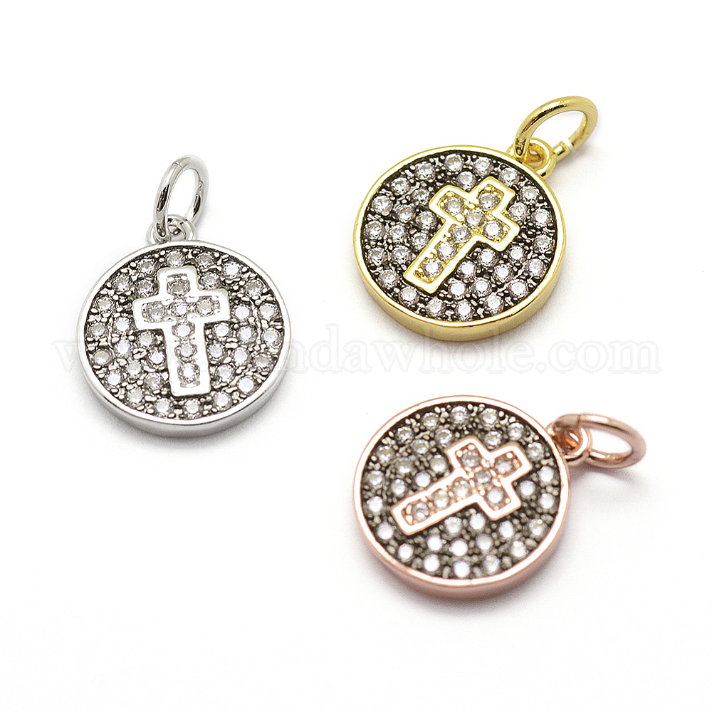 Латунь микро проложить aaa кубические циркониевые прелести, без кадмия, без никеля и без свинца, плоские круглые с крестом