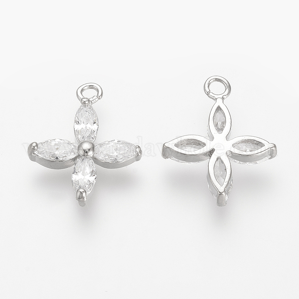 • Платина Латунные подвески, с кубического циркония, цветок, платина, 16.5x14x3.5 мм, отверстие : 1.5 мм