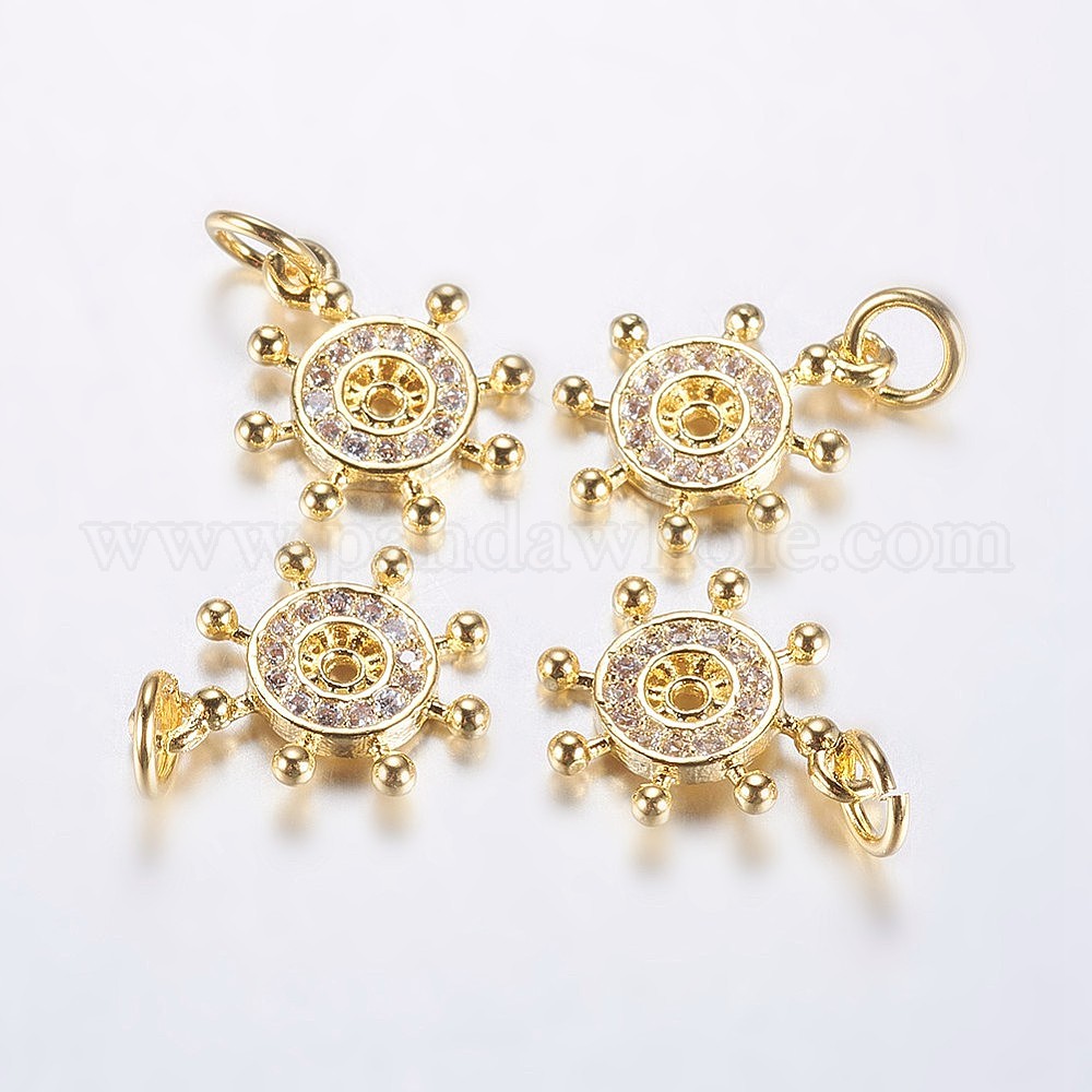 • Настоящее золото 18K Долговечные латунные микропрофили кубические циркониевые прелести, руль, реальный 18 k позолоченный, 14x12x1.5 мм, отверстие : 3 мм
