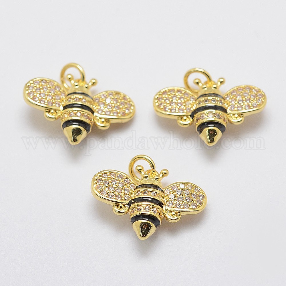 • Золотой Латуни циркония кубической подвески, с эмалью, Пчелы, без свинца, без никеля и без кадмия, золотые, 14x19x5 мм, отверстие : 3 мм