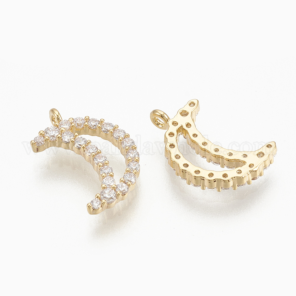 • Настоящее золото 18K Латунные микро проложить кубического циркония прелести, луна, без никеля , реальный 18 k позолоченный, 12x8x1.5 мм, отверстие : 1 мм