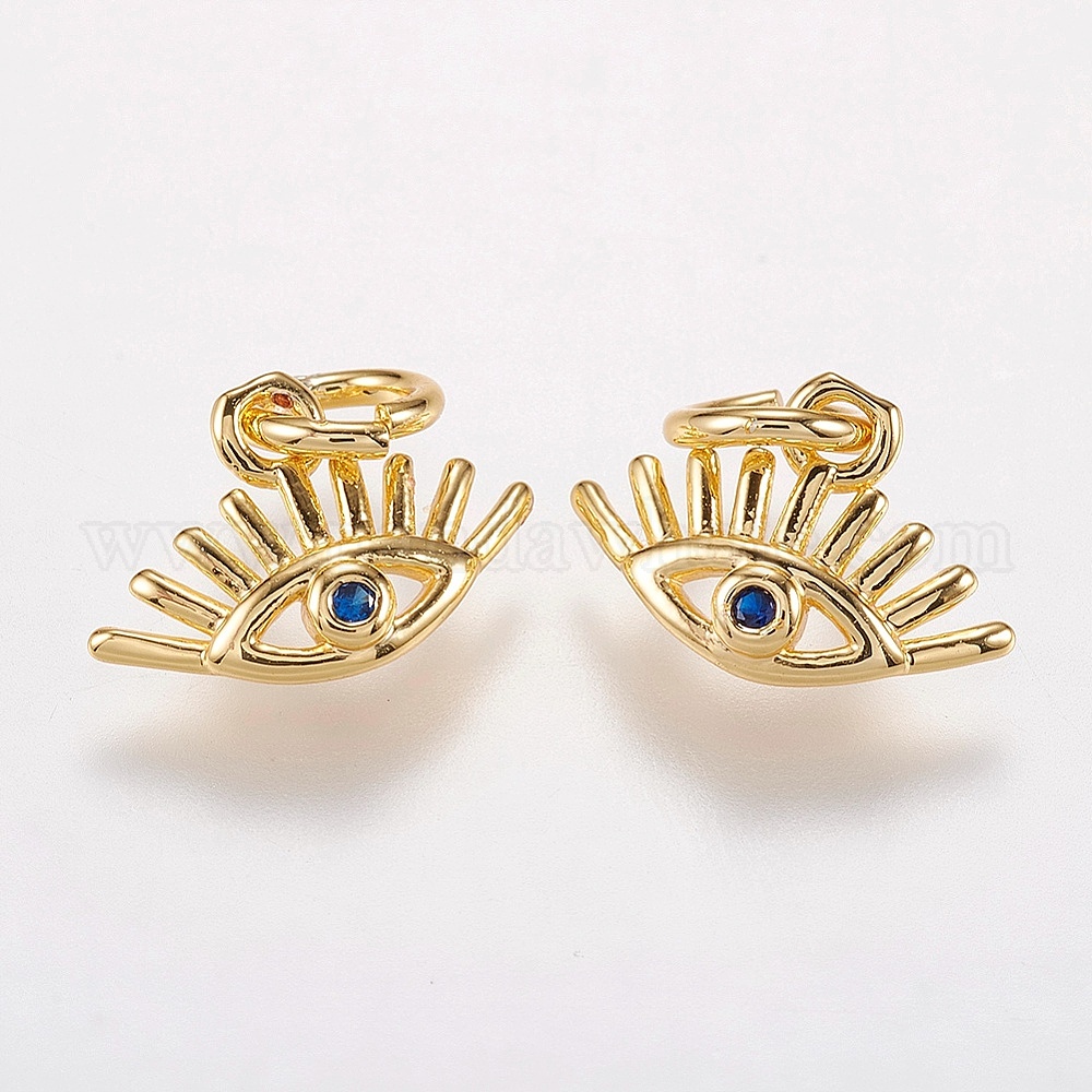 Латунные микро проложить кубического циркония прелести, глаза подвески, синие