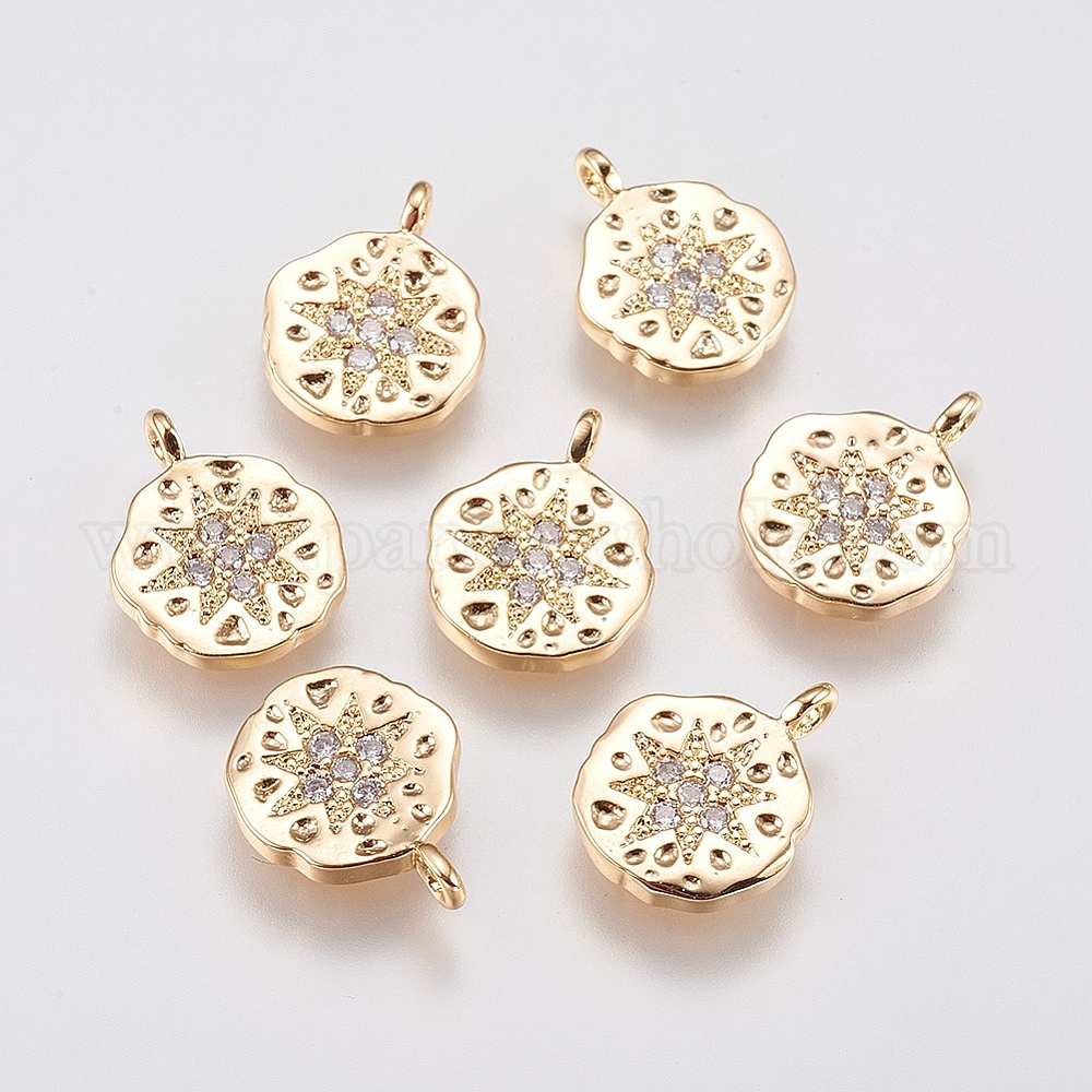 • Настоящее золото 18K Латунные микро проложить кубического циркония прелести, без кадмия, без никеля и без свинца, плоско-круглые, реальный 18 k позолоченный, 10.5x8x2 мм, отверстие : 1 мм