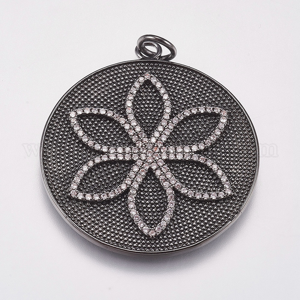 Латунные микро проложить кубического циркония подвески, плоские круглые с цветком
