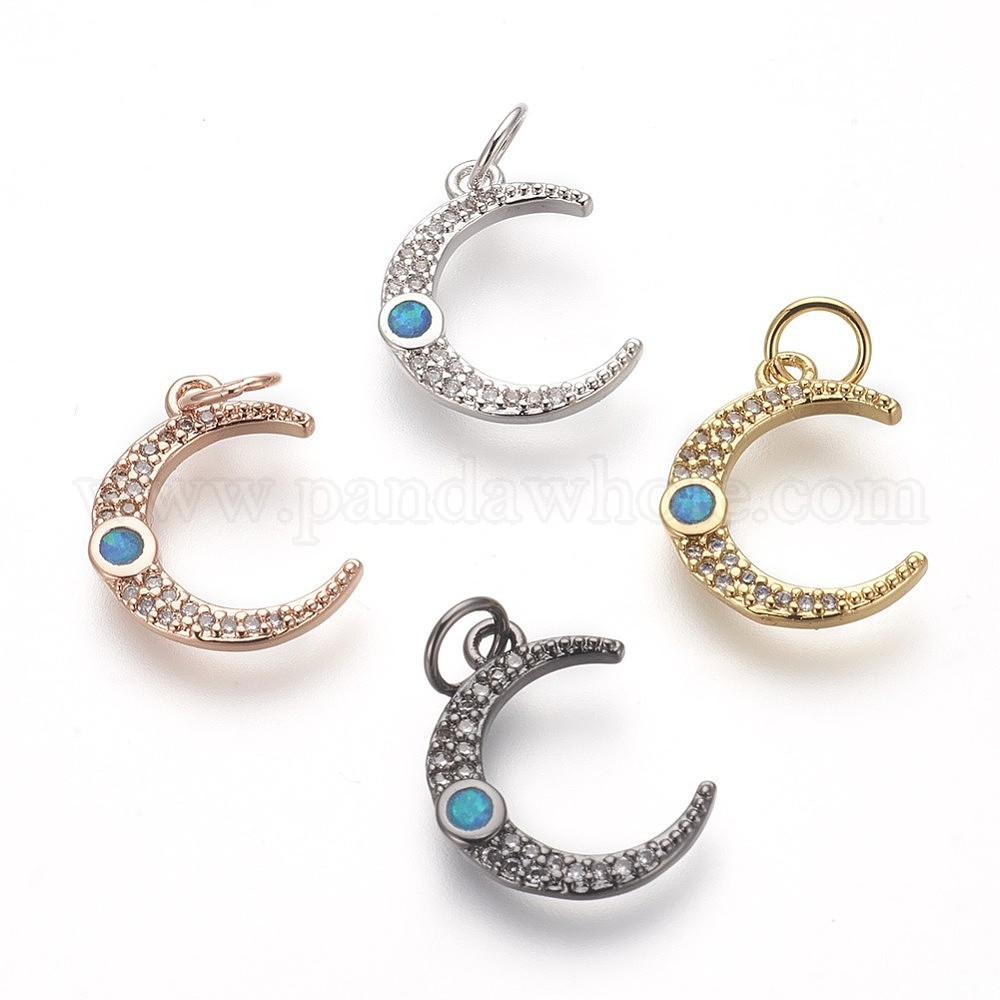 Латунные микро проложить кубического циркония подвески, с опалом, без свинца, без кадмии и без никеля, луна