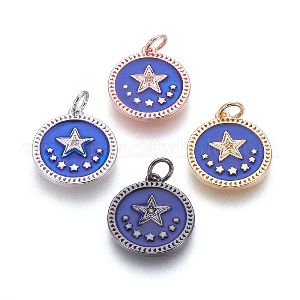 Латунные подвески эмали пентакль, с кубического циркония, плоские круглые со звездой