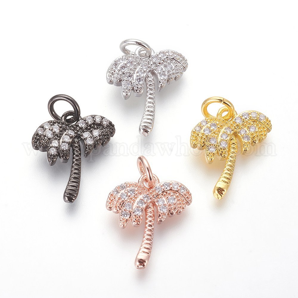 Латунные микро проложить кубического циркония прелести, без свинца и без кадмия, прозрачные, кокосовая пальма