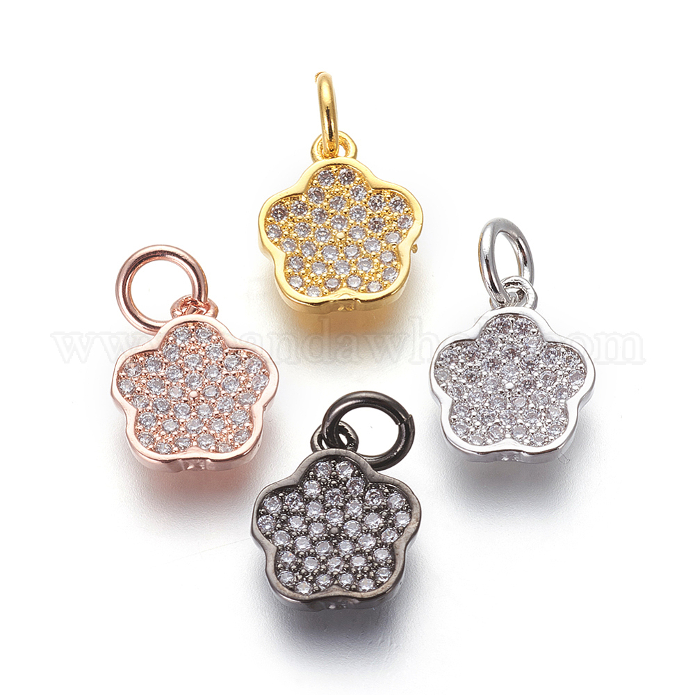 Латунные микро проложить кубического циркония прелести, без свинца и без кадмия, прозрачные, цветок