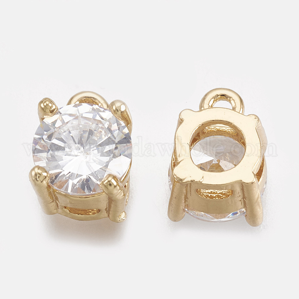 Кубического циркония прелести, без кадмия, без никеля и без свинца, реальный 18 k позолоченный, с латунной фурнитурой , плоско-круглые, прозрачные