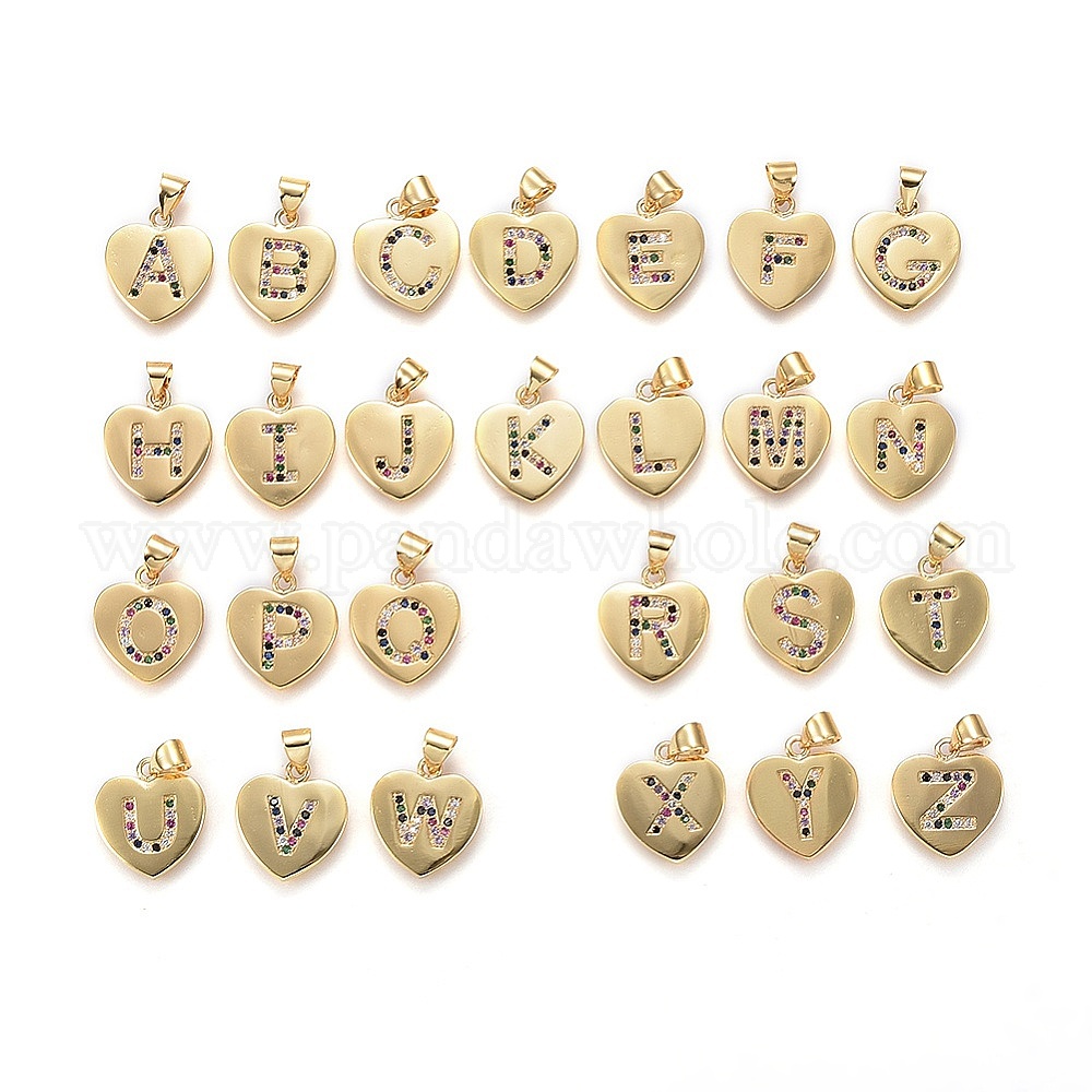 Латунные микро проложить кубического циркония подвески, сердце с письмом