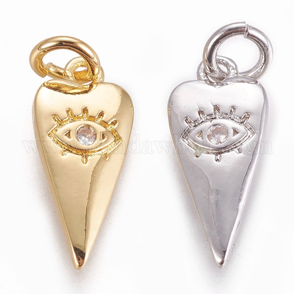• Золотой Латунные подвески, с кубического циркония, сердце с сглаза, прозрачные, золотые, 15.5x7x1.5 мм, отверстие : 3 мм