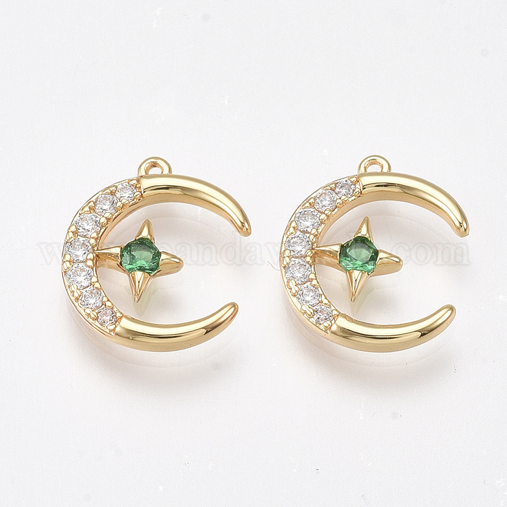 Латунь прелести циркония кубической, луна, без никеля , реальный 18 k позолоченный