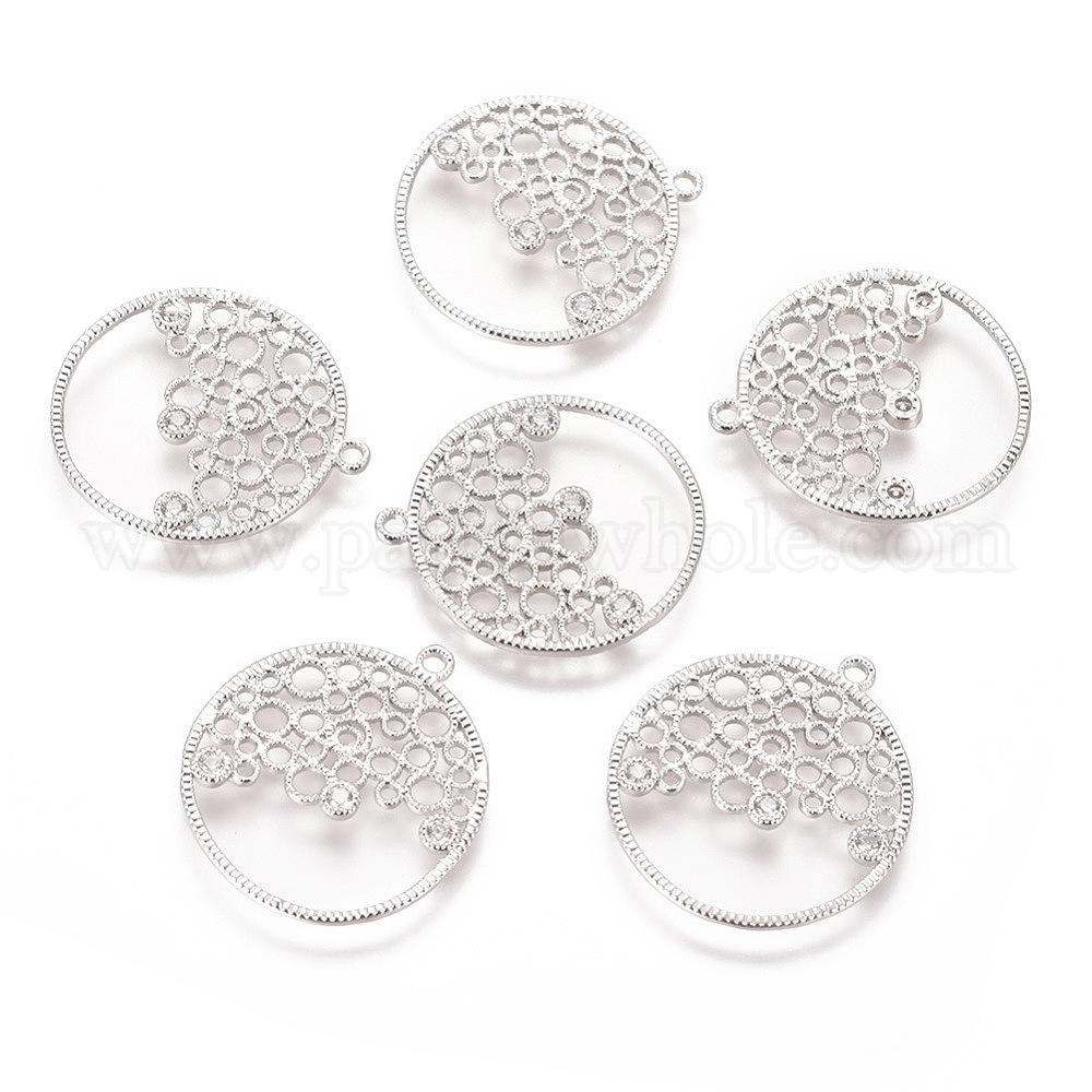 Латунные микро проложить кубического циркония подвески, филигранная фурнитура, без никеля , плоско-круглые