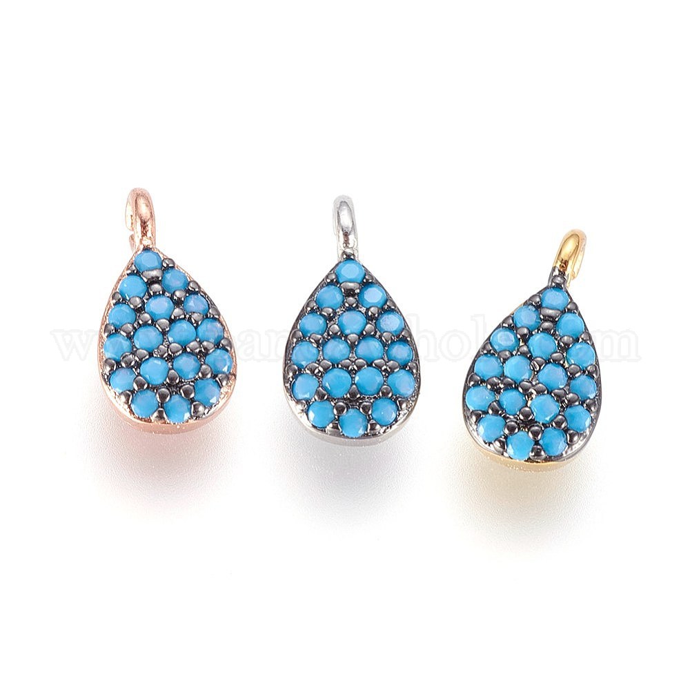 • (52) Непрозрачная лаванда Латунные микро проложить кубического циркония прелести, слеза, глубокое синее небо, разноцветные, 10x5x2 мм, отверстие : 1.2 мм