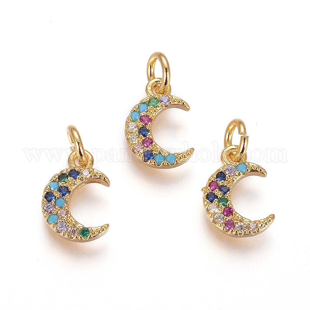 Латунь прелести, с микропаве из кубического циркония и прыжковыми кольцами, луна