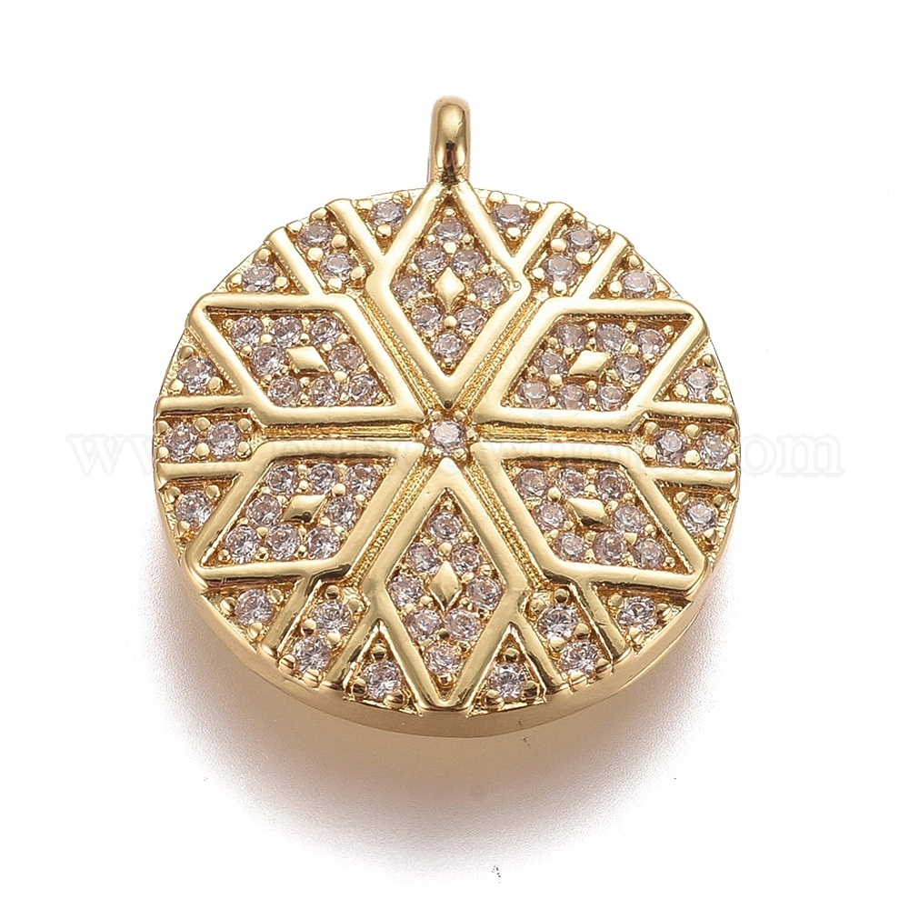 Латунные микропаве прозрачные подвески с фианитом, плоские круглые с цветком