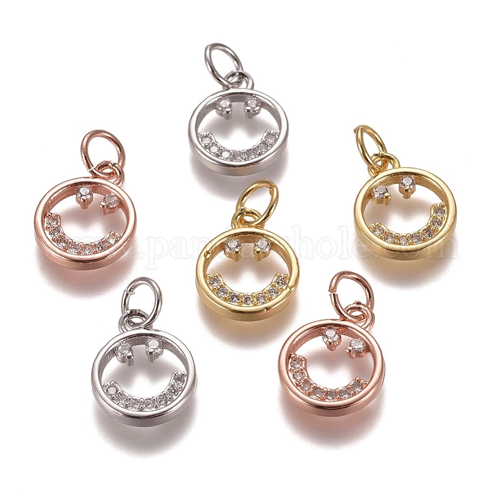 Латунные микропаве прозрачные кубические циркониевые подвески, с прыжковых колец, улыбающееся лицо