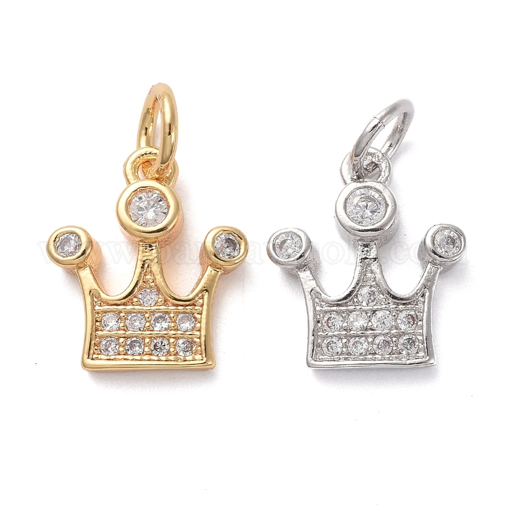 • Платина Латунные микропаве прозрачные кубические циркониевые подвески, с прыжковых колец, корона, платина, 11.5x10x2 мм, отверстие : 3 мм
