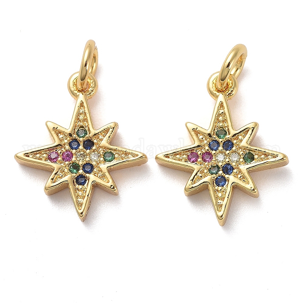 Латунные микро-паве красочные кубические циркониевые подвески, с прыжковых колец, звезда
