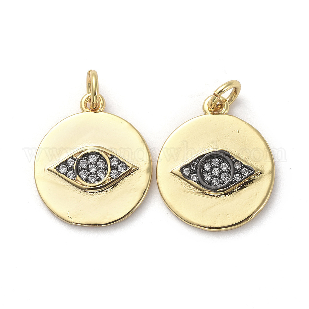 Латунные микропаве прозрачные подвески с фианитом, с прыжковых колец, плоские круглые с глаз