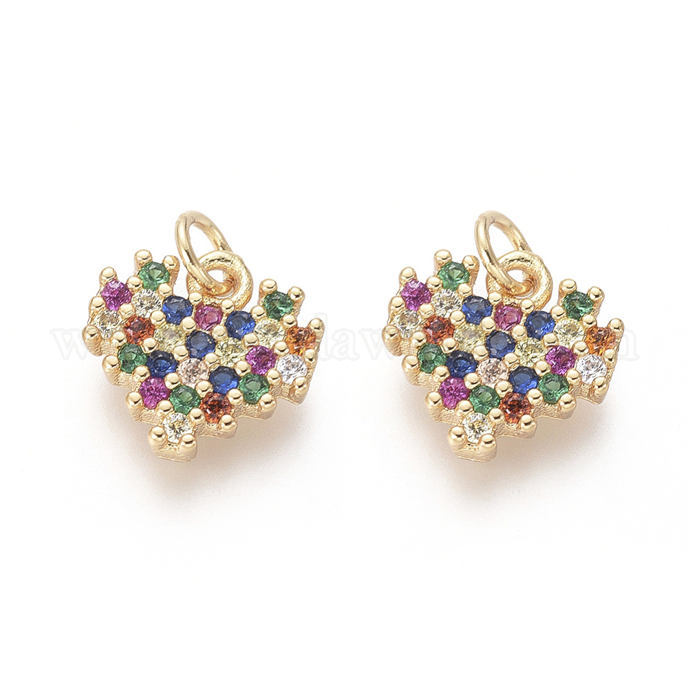 Позолоченные латунные подвески, с фианитом и кольцами для прыжков, сердце