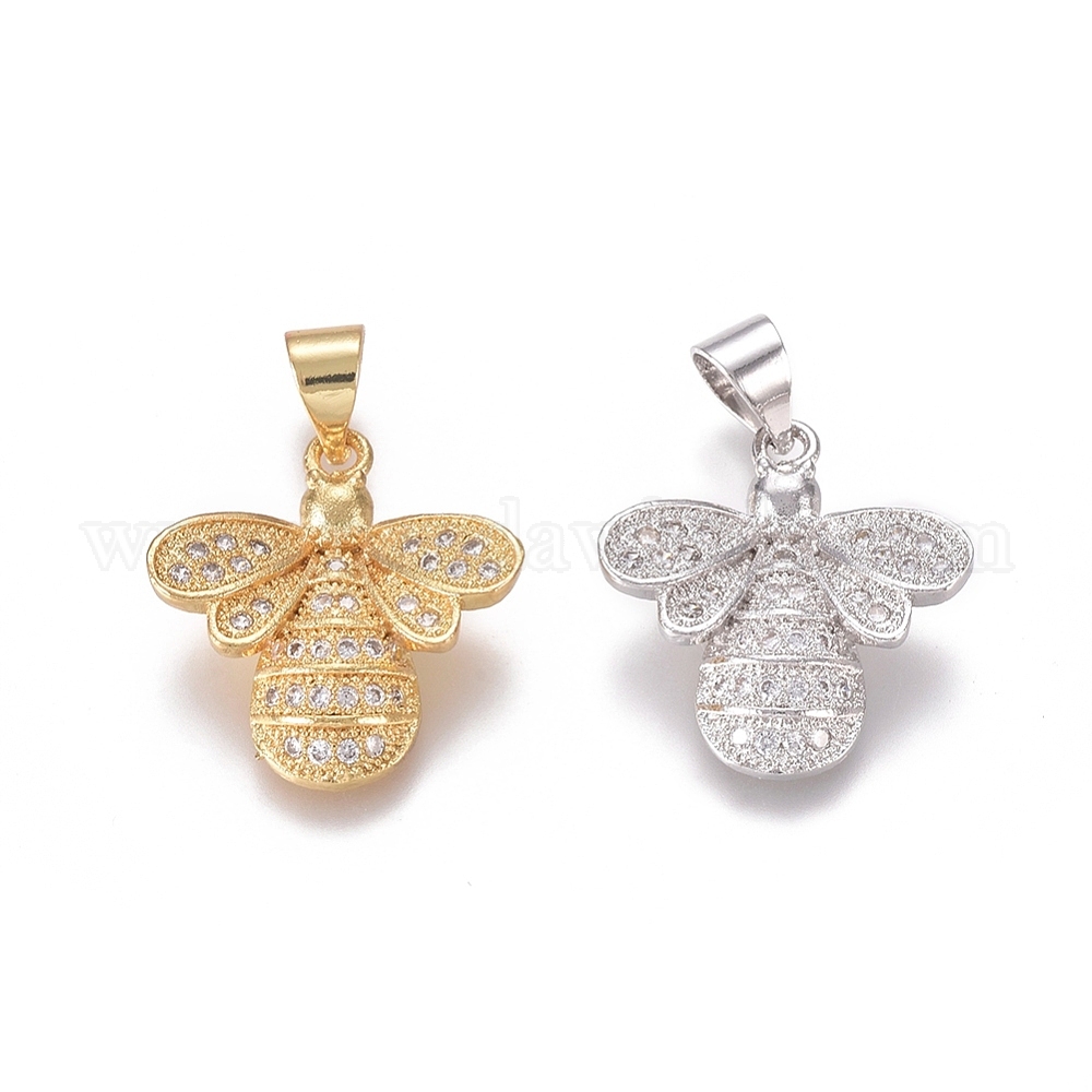 Латунные микропаве прозрачные подвески с фианитом, Пчелы