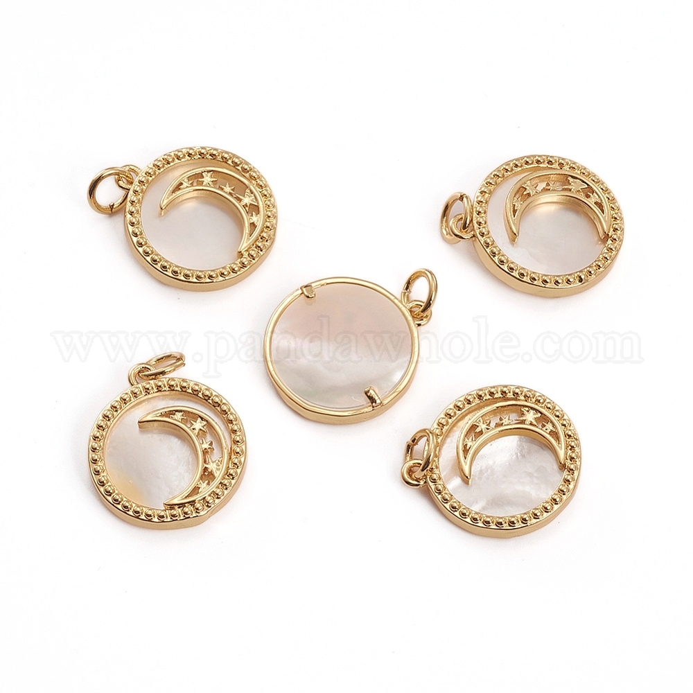 Латунные микропаве прозрачные подвески с фианитом, с оболочкой и кольцами для прыжков, плоские круглые с луной
