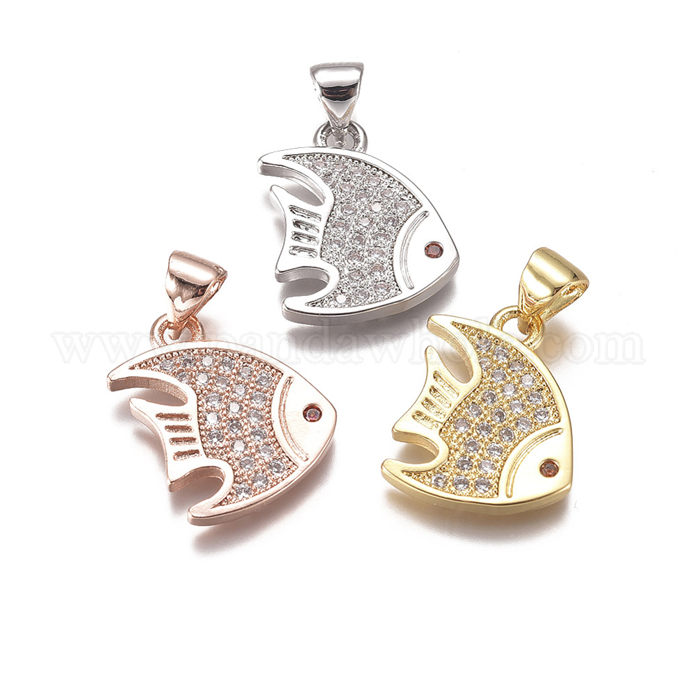 Латунные микропаве прозрачные подвески с фианитом, рыба