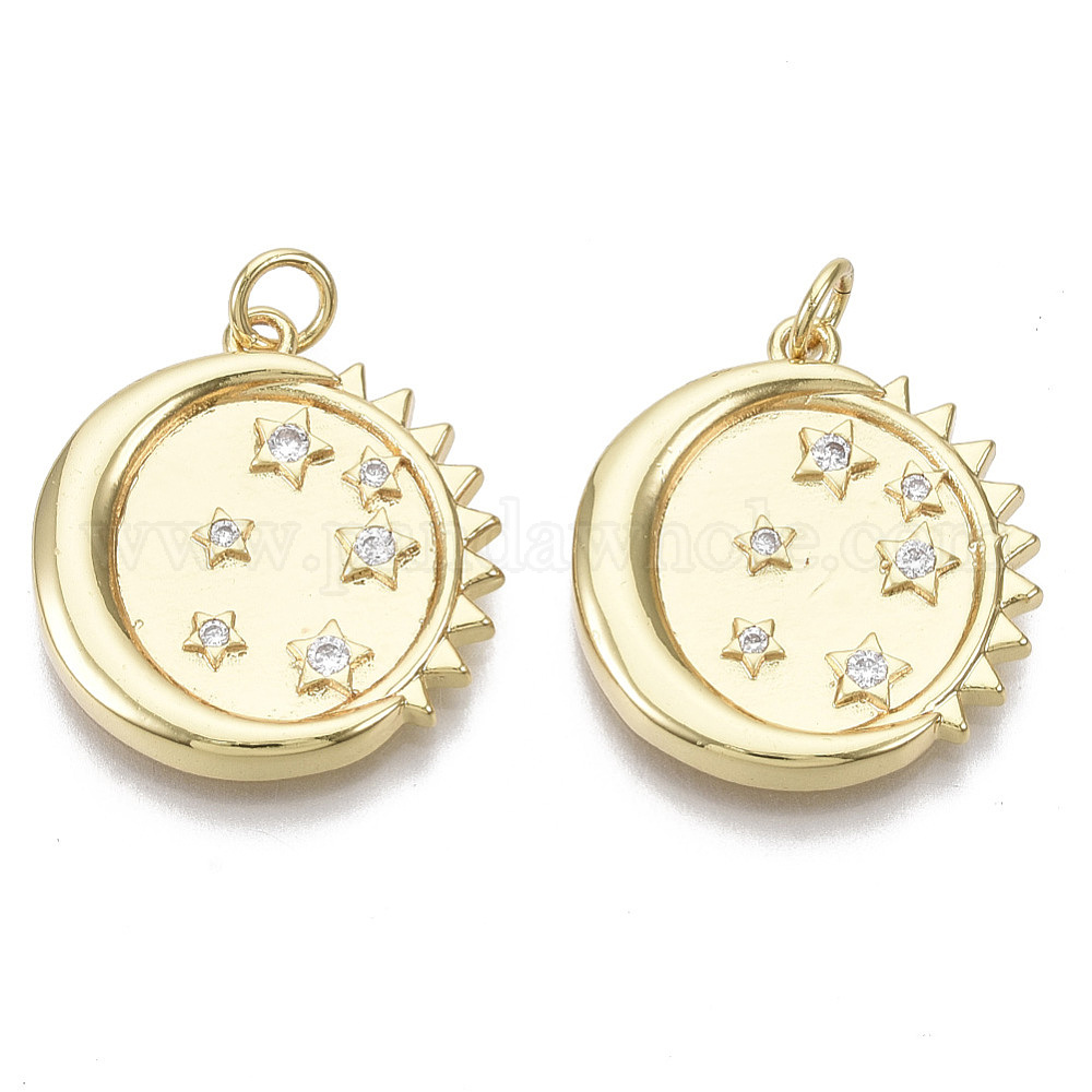 Латунные микро проложить кубического циркония подвески, с прыжковых колец, без никеля , плоский круглый с луной, солнцем и звездой, прозрачные