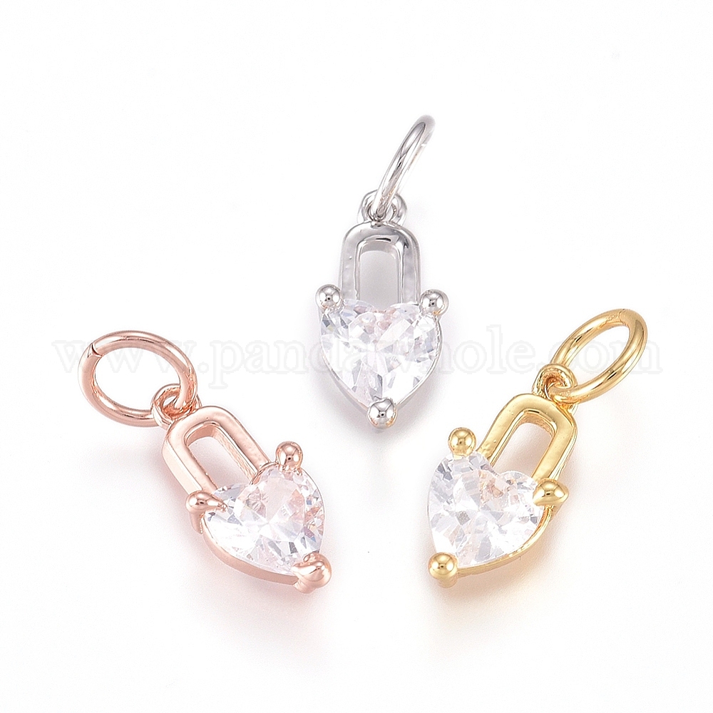 Латунь прелести, с микропаве из кубического циркония и прыжковыми кольцами, сердце замок