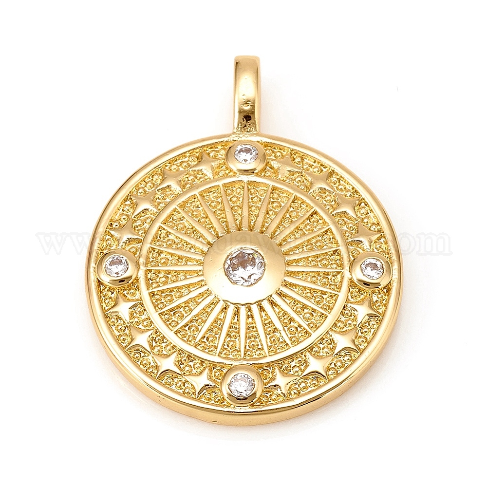 Латунные микро проложить кубического циркония подвески, плоско-круглые, с рисунком солнца и звезд