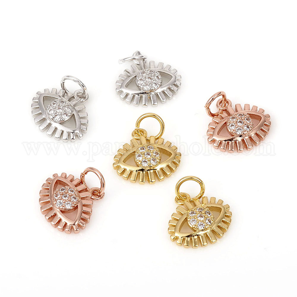 Латунные микро проложить кубического циркония прелести, с прыжковых колец, злые глаза, прозрачные