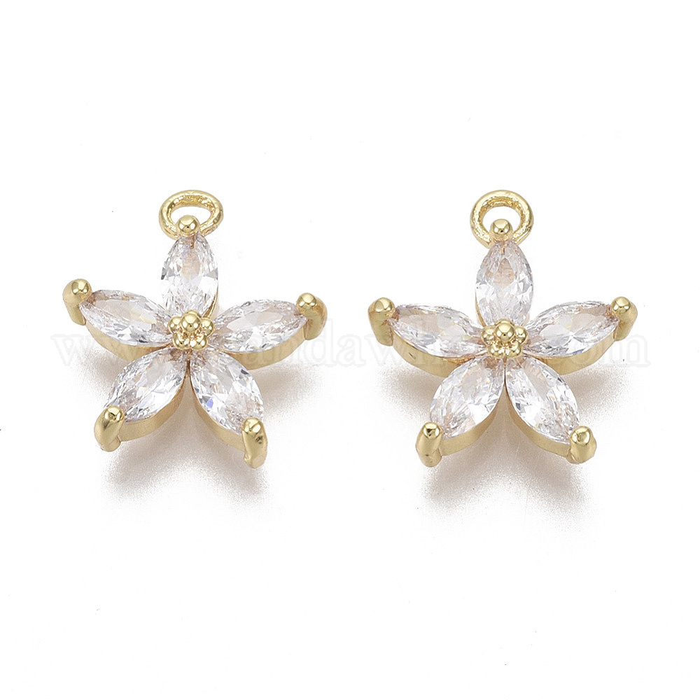 Латунные микро проложить кубического циркония прелести, без никеля , реальный 18 k позолоченный, цветок