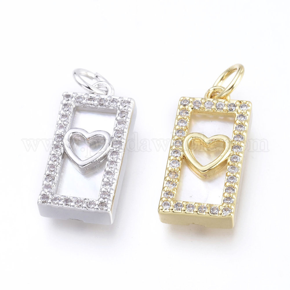 • Настоящее золото 18K Латунные микро проложить кубического циркония подвески, с прыжковыми кольцами и натуральной оболочкой, долговечный, без кадмия и без свинца и без никеля, Прямоугольник с сердцем, прозрачные, реальный 18 k позолоченный, 16x8x3 мм, отверстие : 3.4 мм