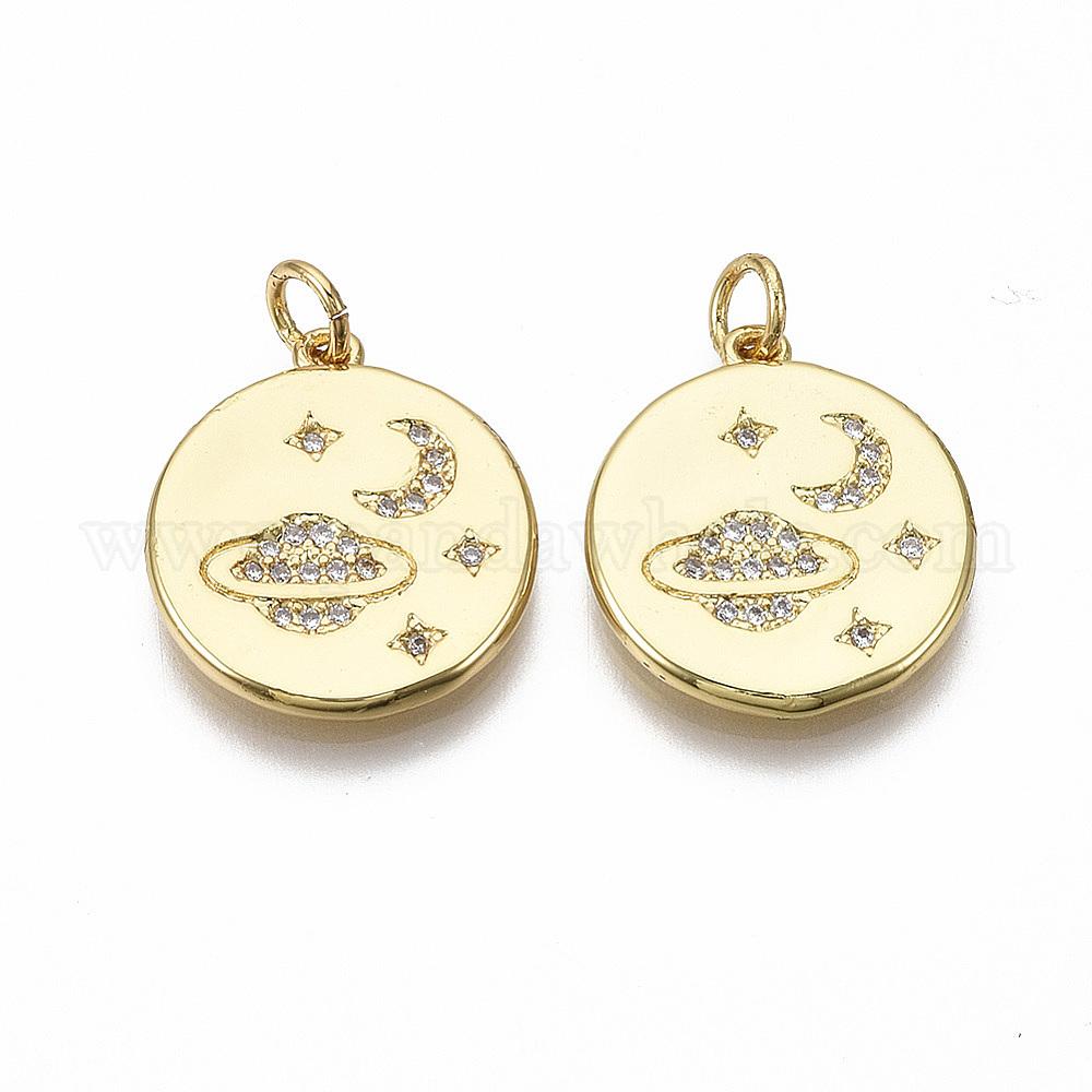 Латунные микропаве прозрачные подвески с фианитом, с целью перехода в кольце, без никеля , плоский круглый со звездой / луной / вселенной
