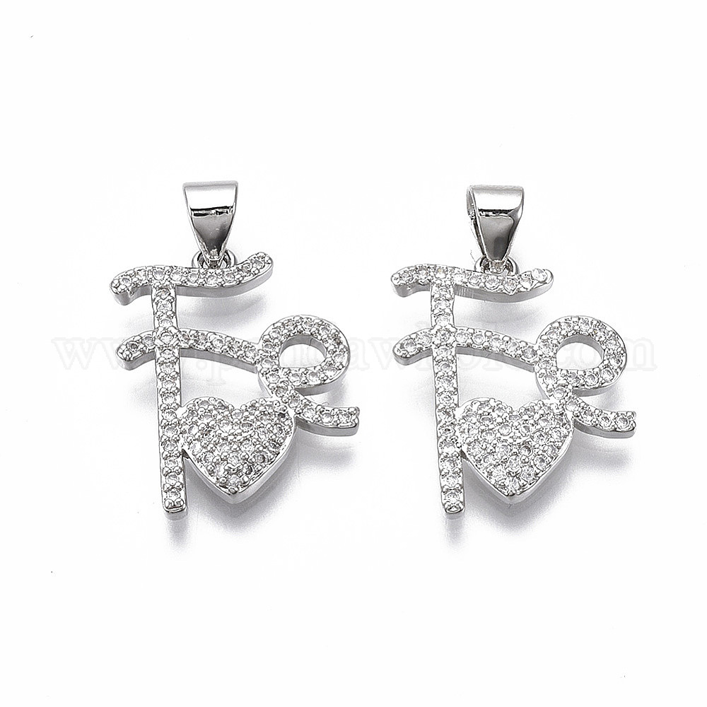 Латунные микропаве прозрачные подвески с фианитом, слово, без никеля