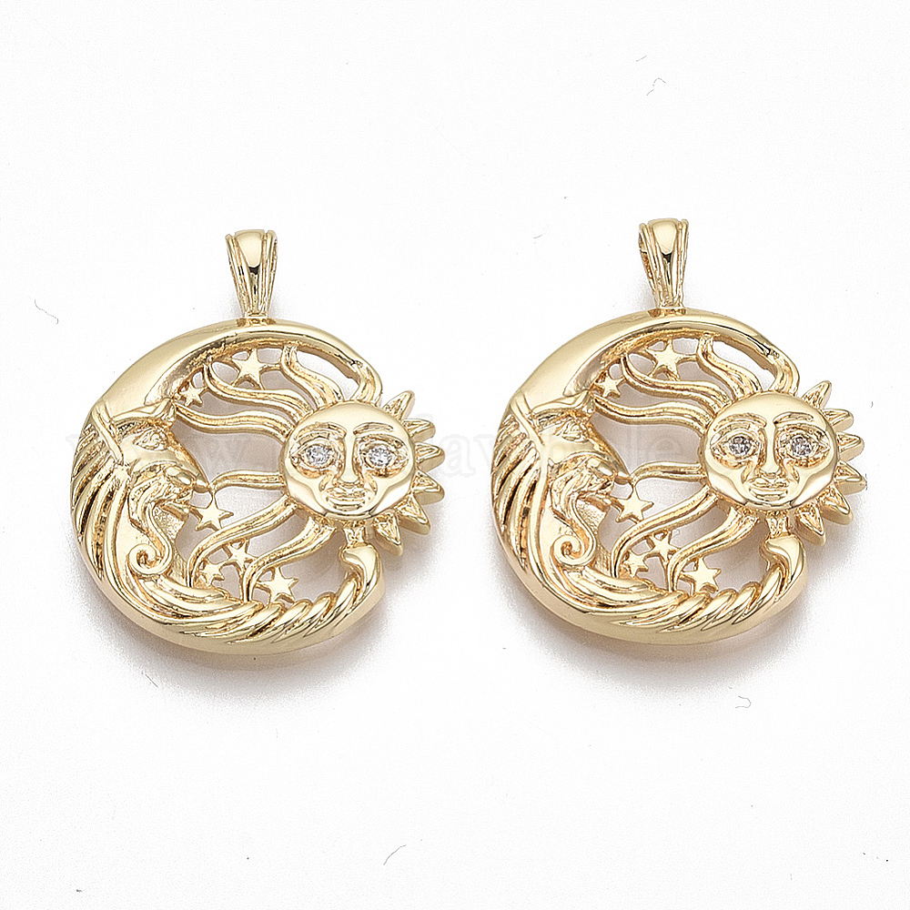 Латунные микро проложить кубического циркония подвески, луна с солнцем, без никеля , прозрачные