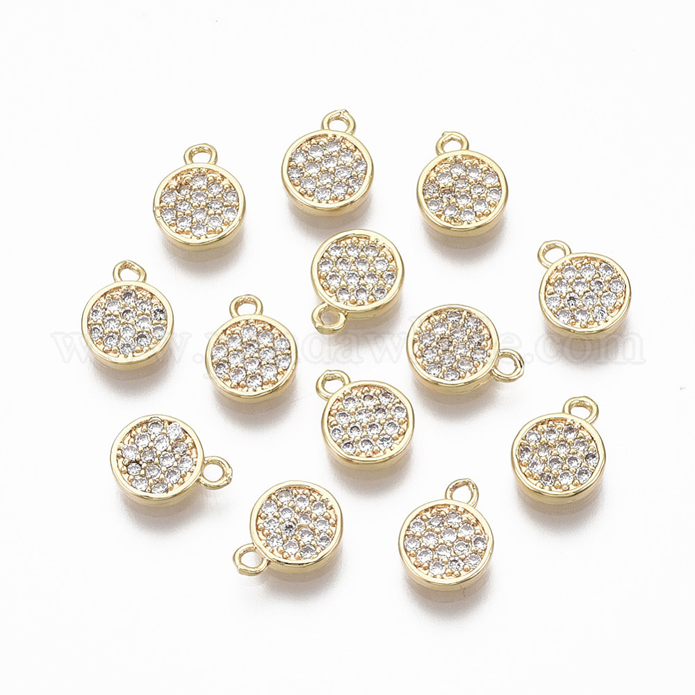 • Настоящее золото 18K Латунные микропаве прозрачные кубические циркониевые подвески, без никеля , плоско-круглые, реальный 18 k позолоченный, 8.5x6.5x1.5 мм, отверстие : 0.9 мм