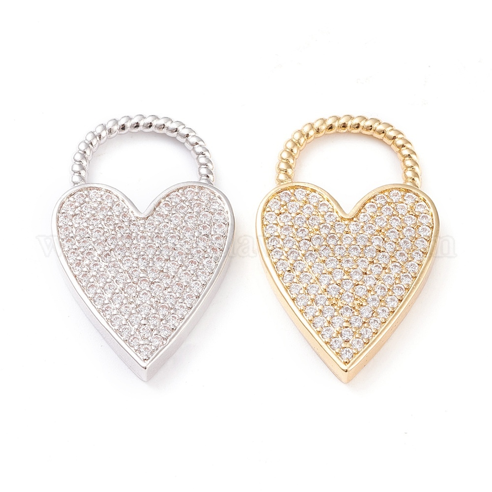 Латунные микропаве прозрачные подвески с фианитом, долговечный, сердце