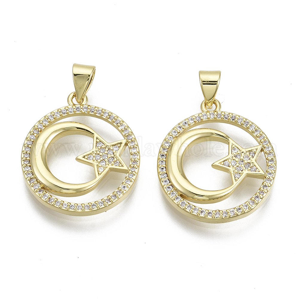 Латунные микро проложить кубического циркония подвески, с латунной привязкой на поруки, без никеля , круглые, звезды с луной, реальный 16 k позолоченный
