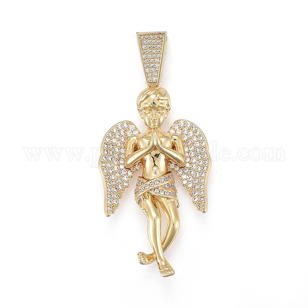 Латунные микропаве прозрачные подвески с фианитом, долговечный, молится ангел