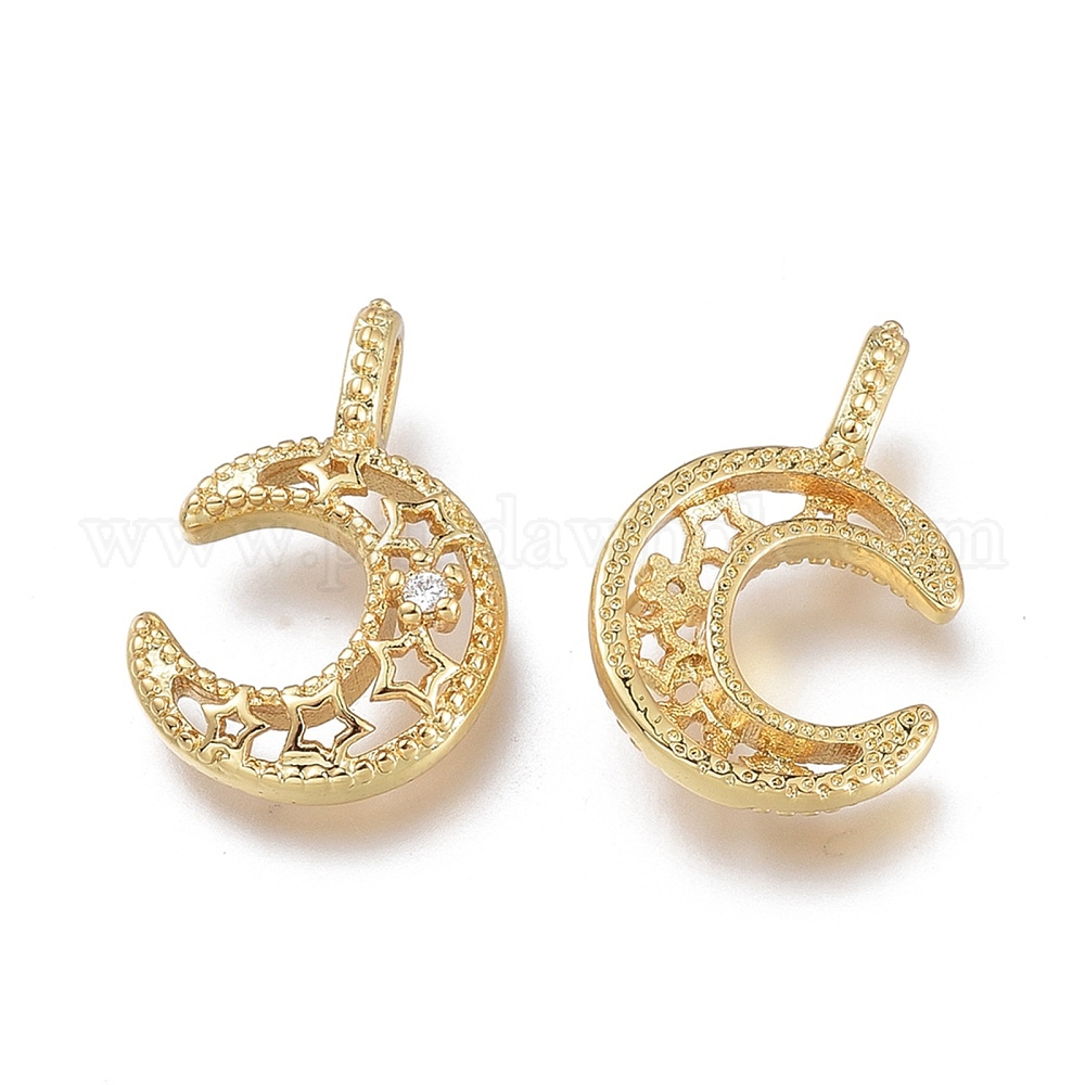 Латунные микропаве прозрачные подвески с фианитом, долговечный, луна