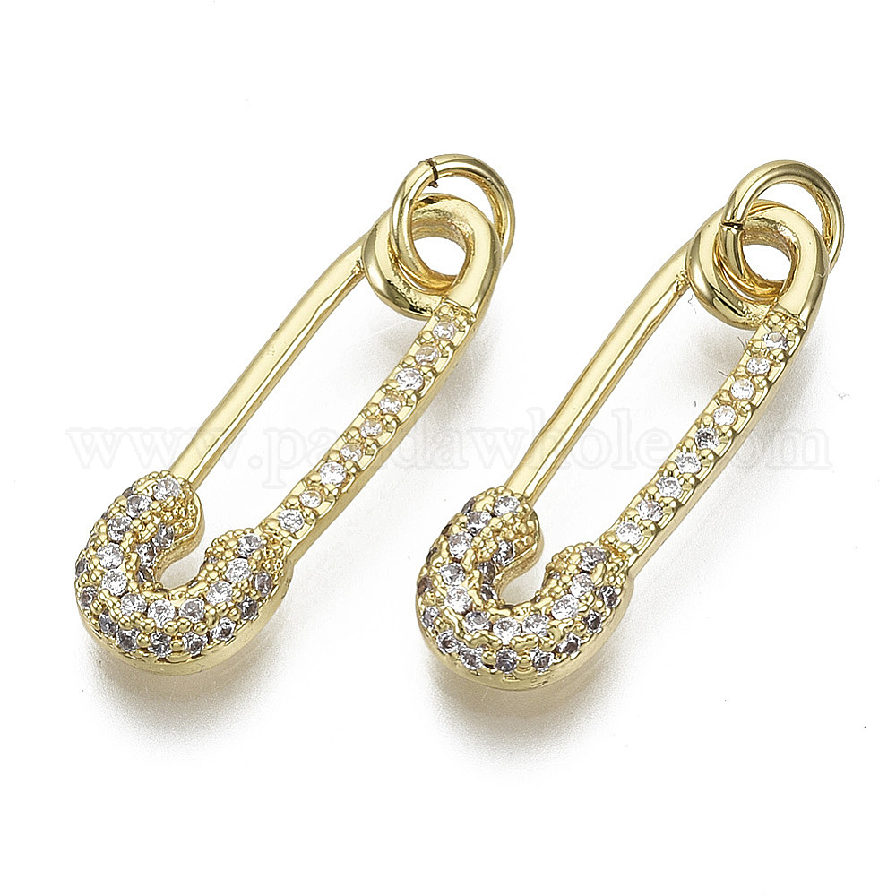 Латунные микро проложить кубического циркония подвески, без никеля , с прыжковых колец, Форма предохранительного штифта, прозрачные